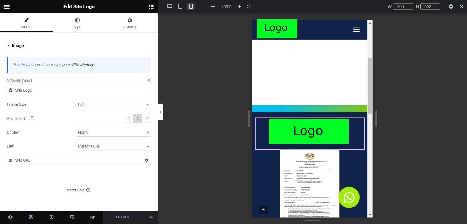 - The mobile will display the layout (padding, margin, alignment, etc.) with the desktop setting, not the mobile setting that was adjusted by using the elementor editor.
