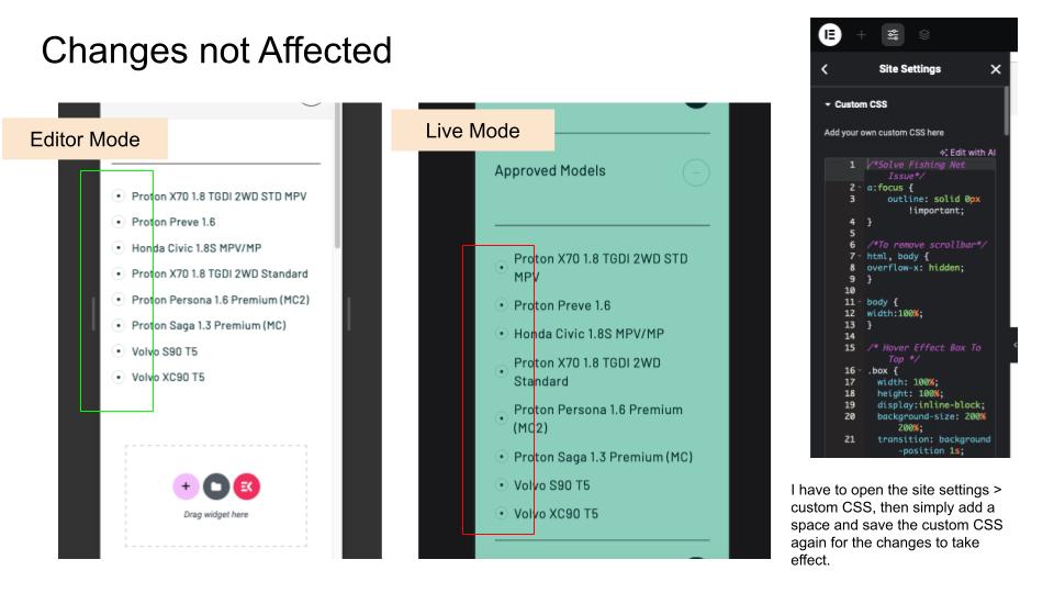 - I have to open the site settings > custom CSS, then simply add a space and save the custom CSS again for the changes to take effect.